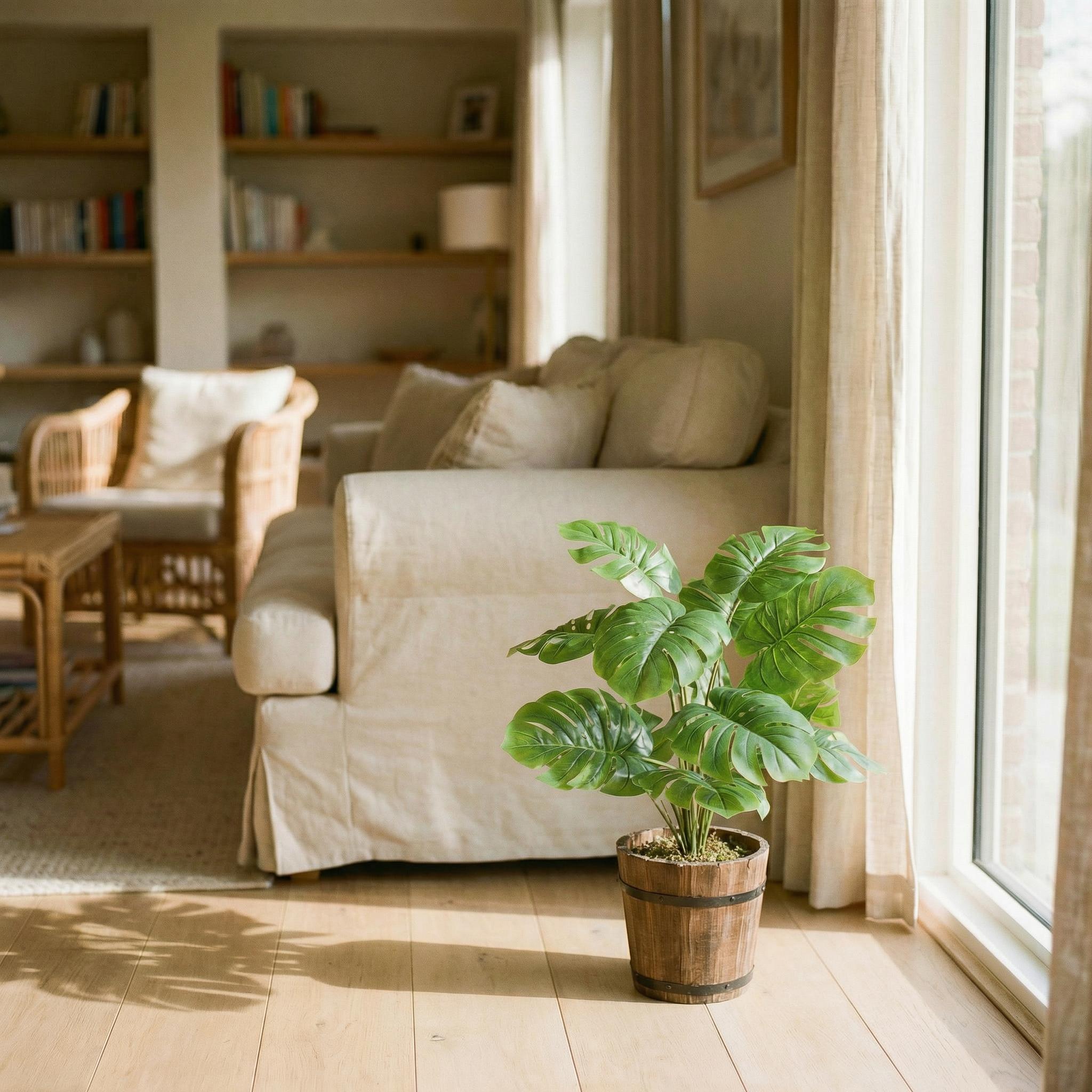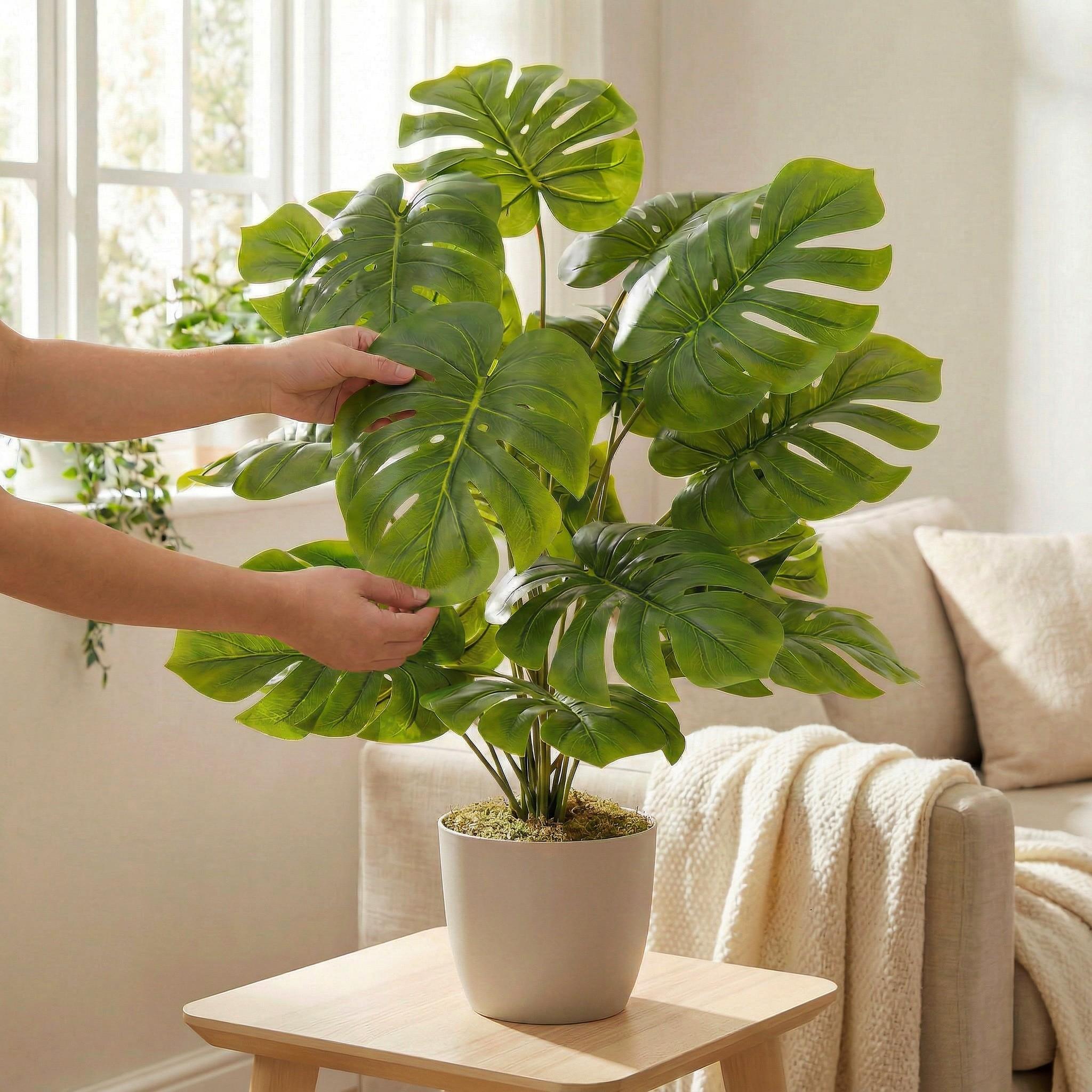 Pour que votre Monstera artificiel reste beau longtemps, il suffit de le dépoussiérer régulièrement. Il est préférable d'essuyer les feuilles avec un chiffon doux et légèrement humide. De temps en temps, vous pouvez également réajuster légèrement la disposition des feuilles afin que la plante conserve sa forme pleine et naturelle.
